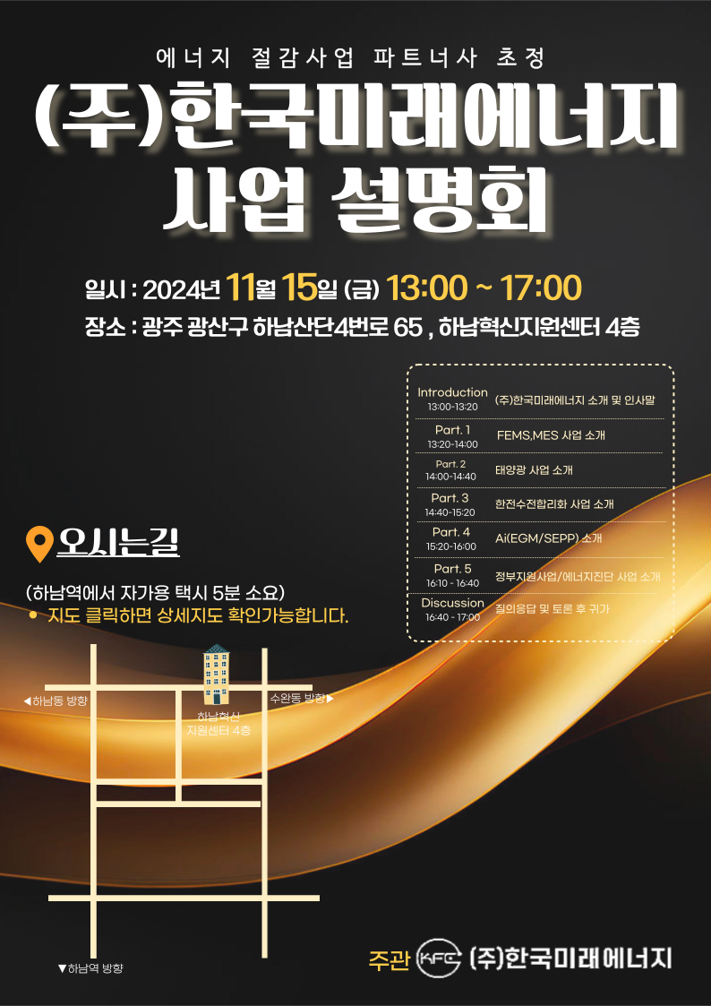 한국미래에너지 파트너사 신규대상 사업 설명회 및 교육 안내 (11/15)